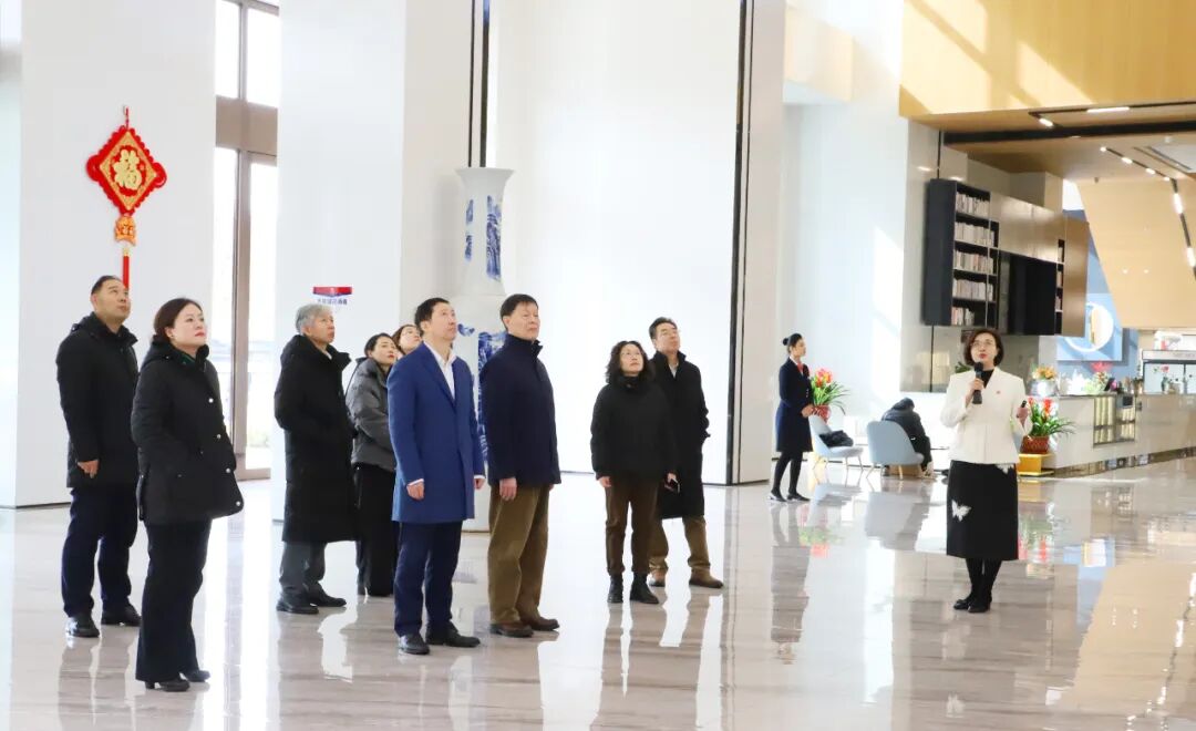 陈宜明一行在恒信·志远名著听取了韩宝晶、王春华关于项目建设情况的汇报,参观了项目的宋式园林景观和精装样板间。