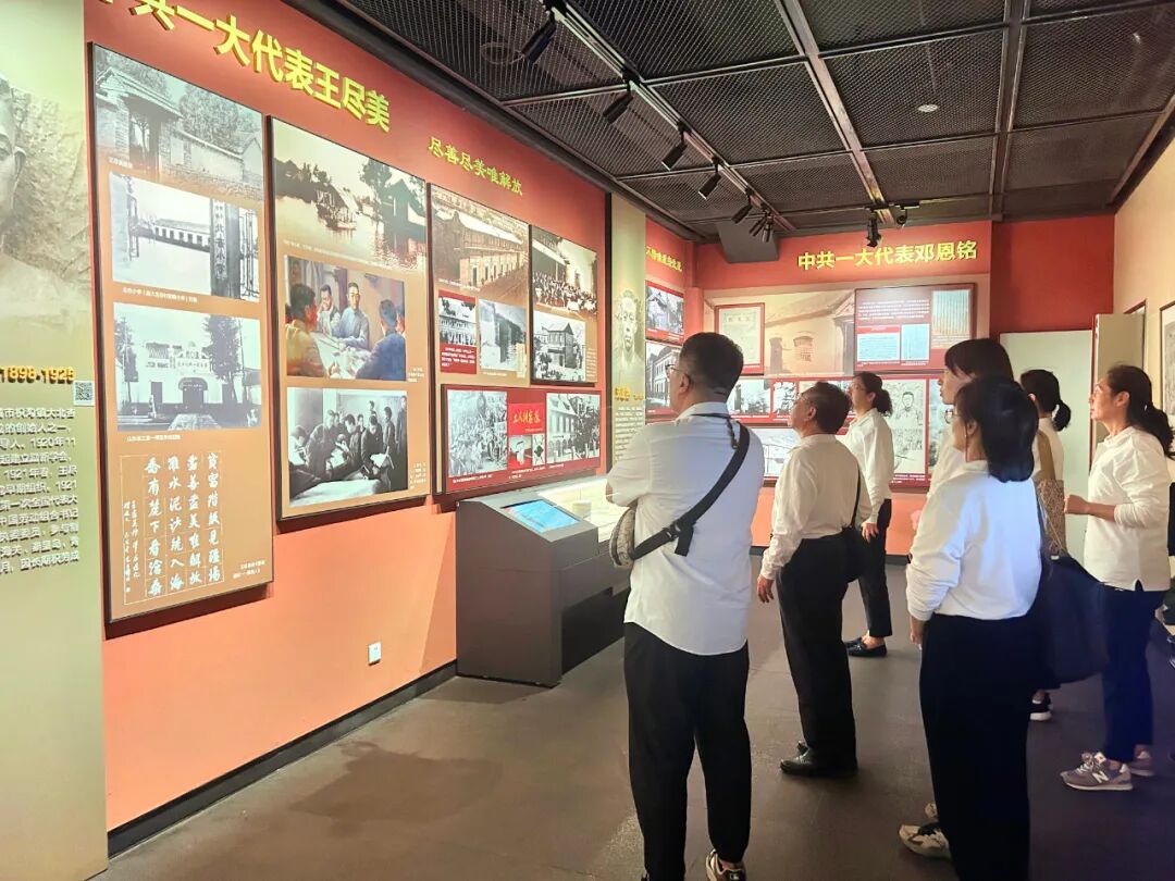 大家参观位于济南市五龙潭公园东南侧的中共山东早期历史纪念馆。它是为铭记山东人民在党的领导下筚路蓝缕的初心之路,缅怀革命英烈,传承红色基因,以省委机关旧址这一山东红色地标为核心,对原有的中国共产党山东省党史陈列馆和山东省文物商店进行拆建、改造提升,精心打造的具有重要政治和历史意义的纪念馆。两位革命人士王尽美和邓恩铭就曾在这里工作。大家先后参观了纪念馆内“社会变革 历史选择”“点燃星火 彰显初心”“工农运动 异军突起”等展厅,瞻仰了王尽美、邓恩铭烈士的雕塑,了解了山东党组织发展史和王尽美、邓恩铭烈士光辉、壮烈的一生。以王尽美、邓恩铭为代表的济南先进分子参与了中国共产党的创立。1921年7月,王尽美、邓恩铭参加完中共一大返回济南后不久,就选择了此处作为济南党组织的秘密办公地点,承担起领导全省革命活动的重任,把自己的智慧和力量全部献给了党。革命火种正是从这里燎原整个齐鲁大地。