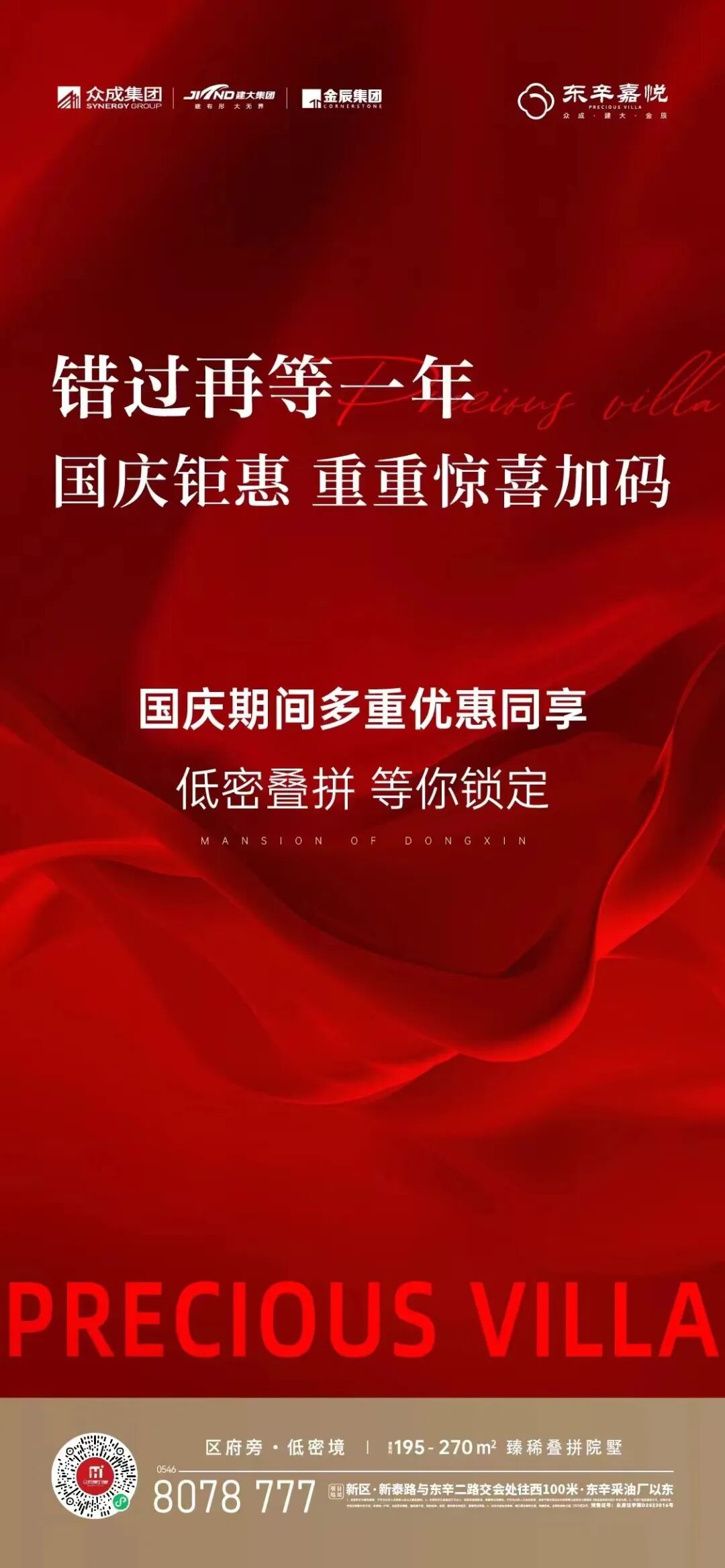 “十一”假期本就是房地产营销的重要节点,再加上降准、降息、降首付等等利好政策,东营房企积极行动,组织各种暖场活动的同时制定优惠让利销售政策,激发消费热情。如果你想在国庆看房,也可以去看看。
