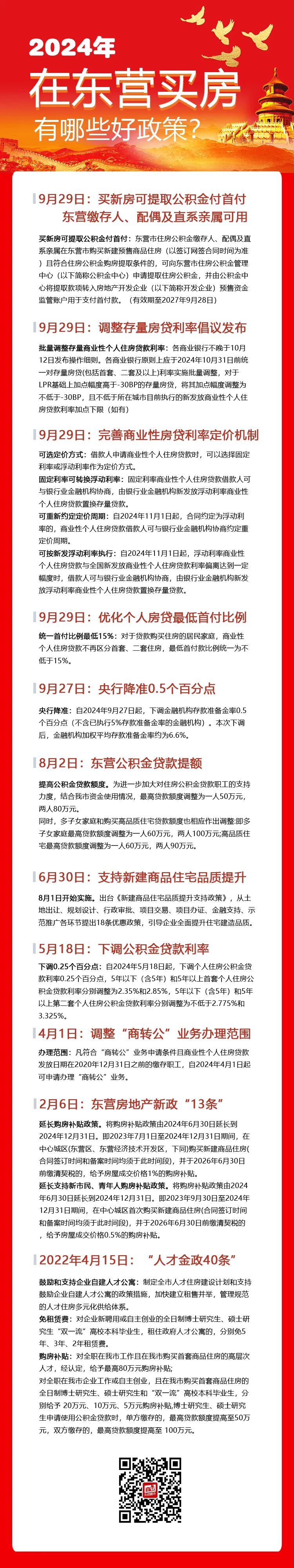 今天是国庆长假第五天,最近重磅利好一茬接一茬!不仅股市连吃了多天红利疯狂上涨,楼市也密集出台利好政策、疯狂给买房人发大礼包!为贯彻落实2024年9月26日中央政治局会议精神,促进房地产市场止跌回稳。山东省房地产业协会、东营市住房和城乡建设管理局积极号召开展“百城千企商品房促销活动”。